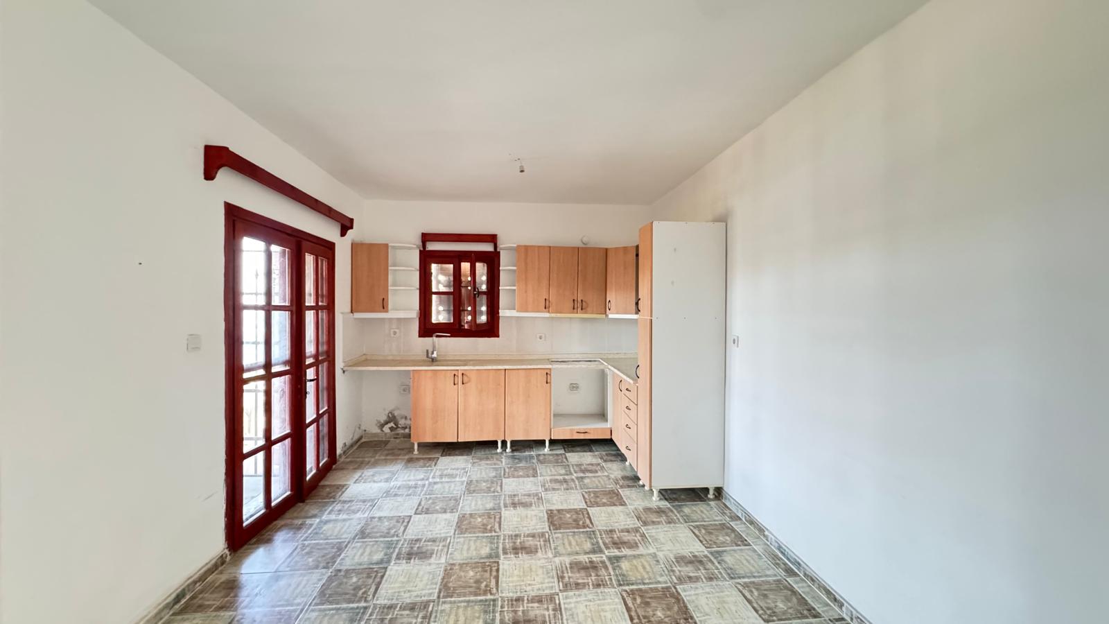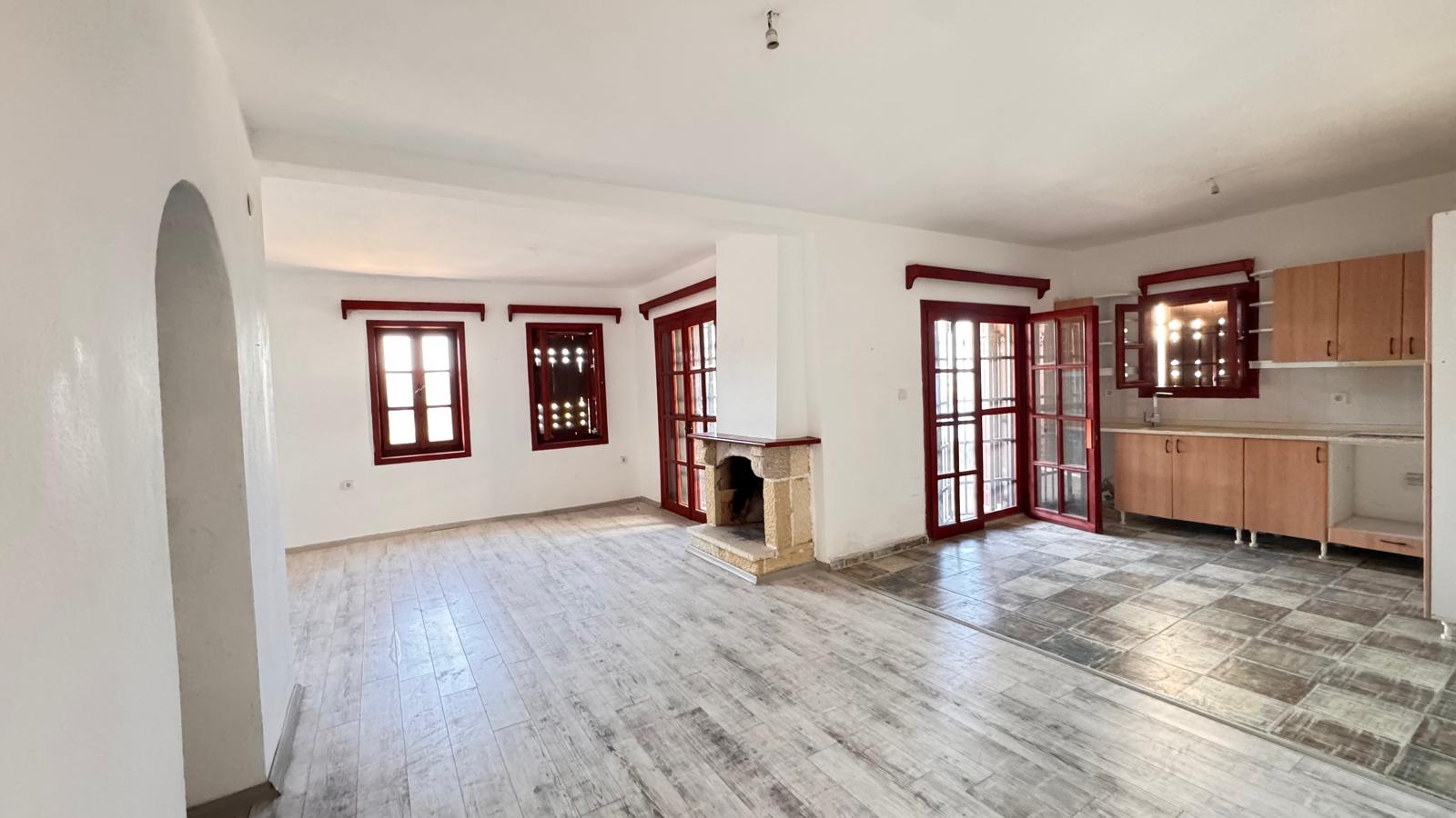 Şömineli geniş salon ve açık mutfak